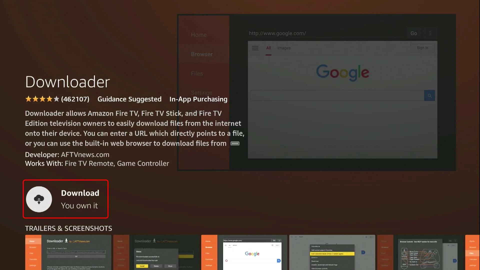 Поиск программы Downloader в магазине приложений на Amazon Fire Stick