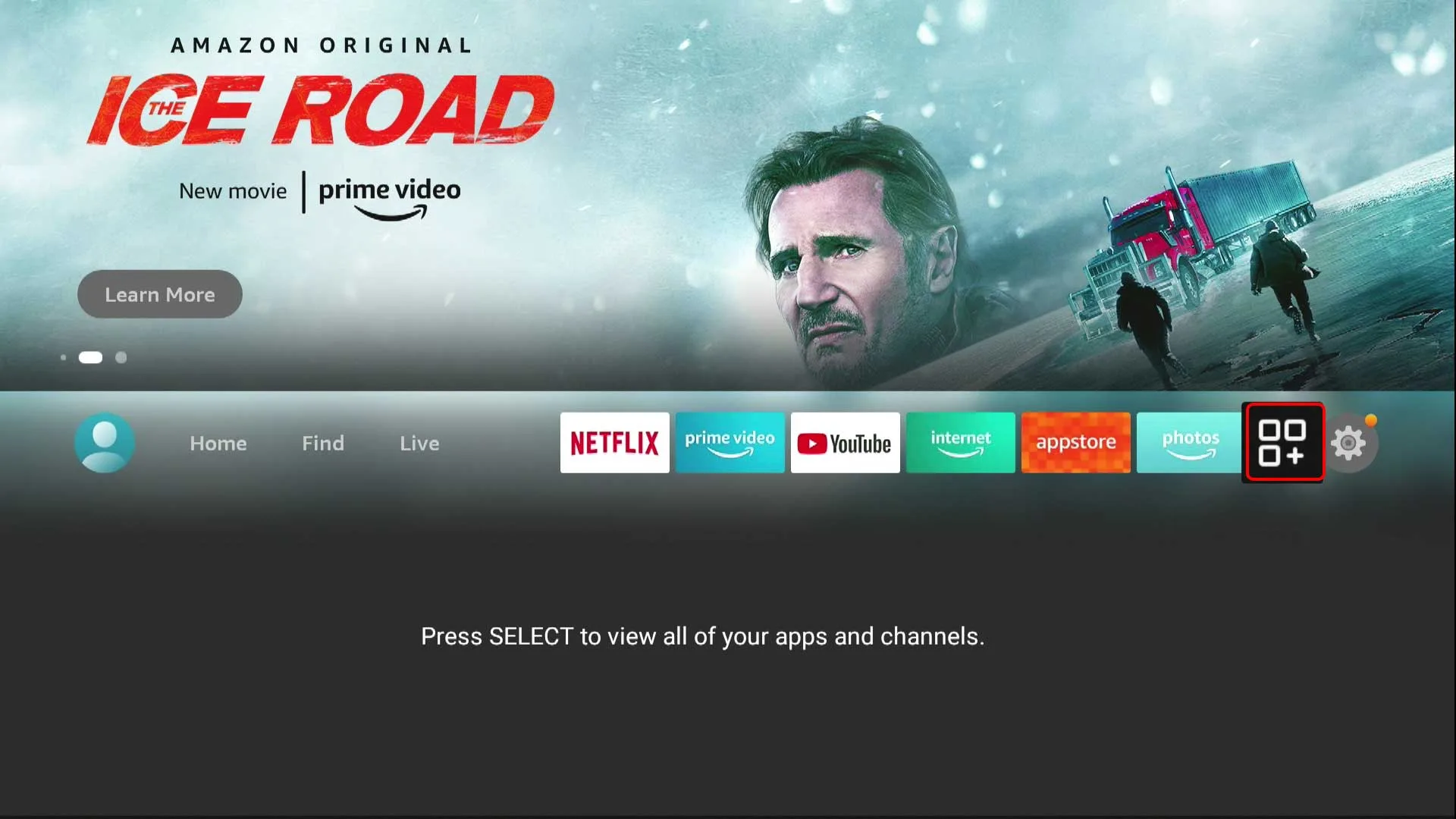 1. С домашнего экрана Amazon Fire TV Stick перейдите в раздел “Settings”