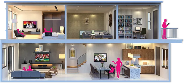 Подключить несколько телевизоров в пределах одной квартиры или дома можно с помощью функции «Мультирум». Используя всего одну подписку, можно смотреть телевидение одновременно в разных комнатах и на различных устройствах.