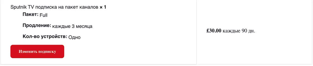 изменить количество устройств для одновременного просмотра в пакете Sputnik TV.